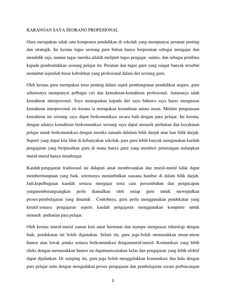 . Saya bersyukur menjadi salah seorang murid cikgu. Karangan Bahasa Melayu - GURU KESAYANGAN SAYA. Mereka tidak berminat dengan aktiviti kokurikulum dijalankan oleh Kelab Persatuan dan Unit Beruniform lantaran daripada sikap malas mereka dan pengaruh permainan dalam talian.